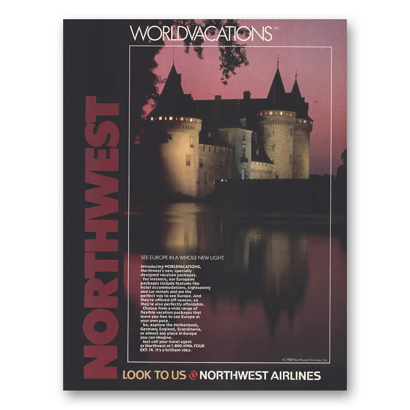 1988 Northwest Airlines Print Ad | See Europe
