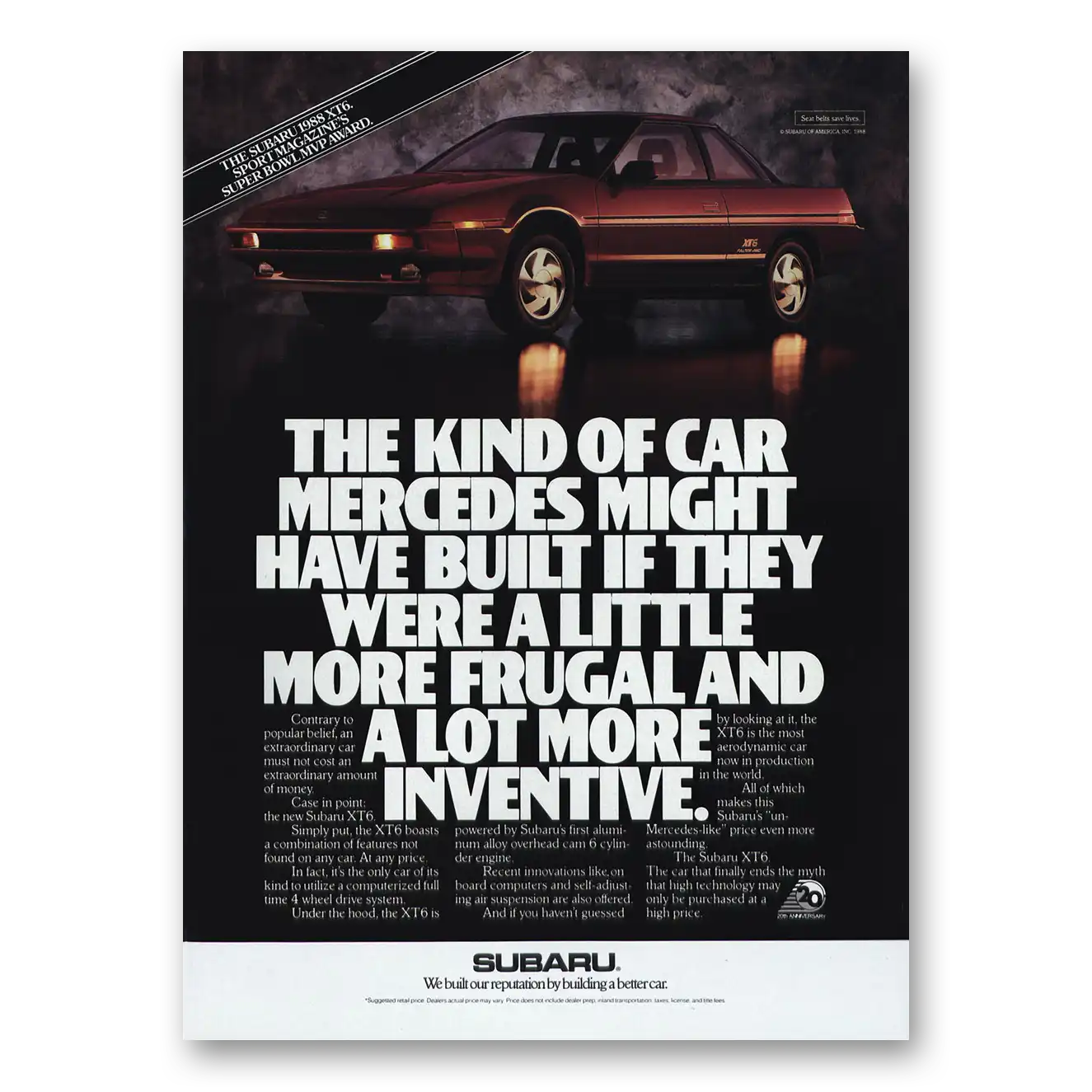 1988 Subaru XT6 Print Ad | Mercedes Might