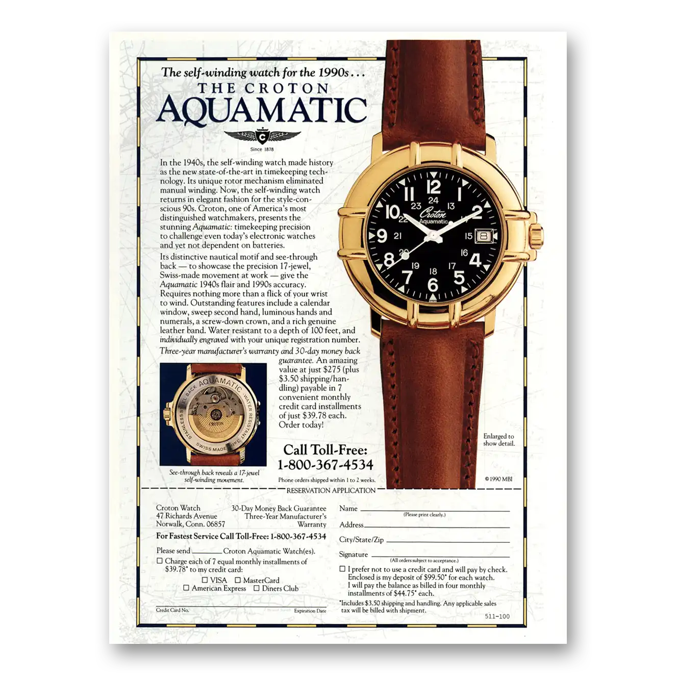 1990 Croton Watch Print Ad | Aquamatic Watch