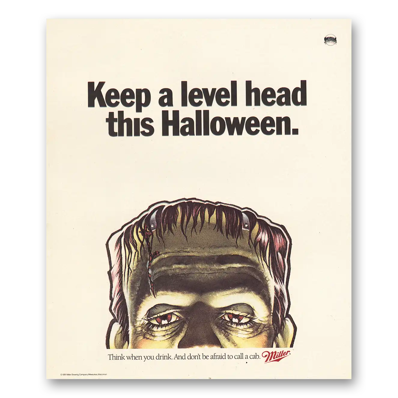 1991 Miller Beer Print Ad | Keep Level Head Halloween