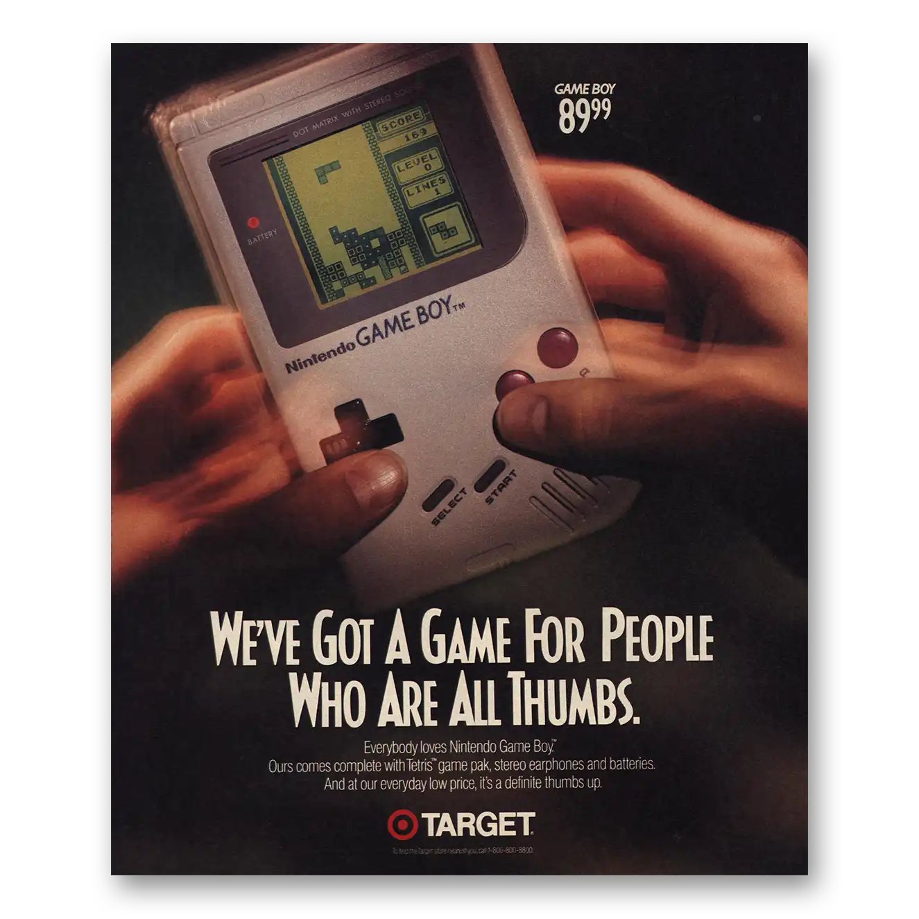 This is an original 1991 Nintendo Game Boy print ad published by Target.