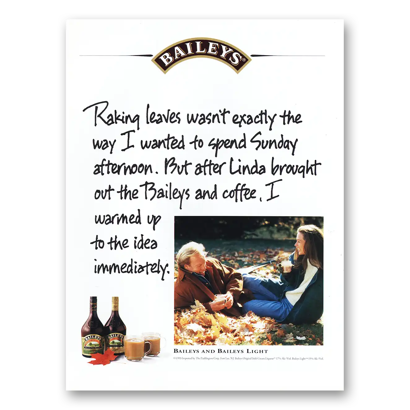 1993 Bailys Irish Cream Print Ad | Raking Leaves
