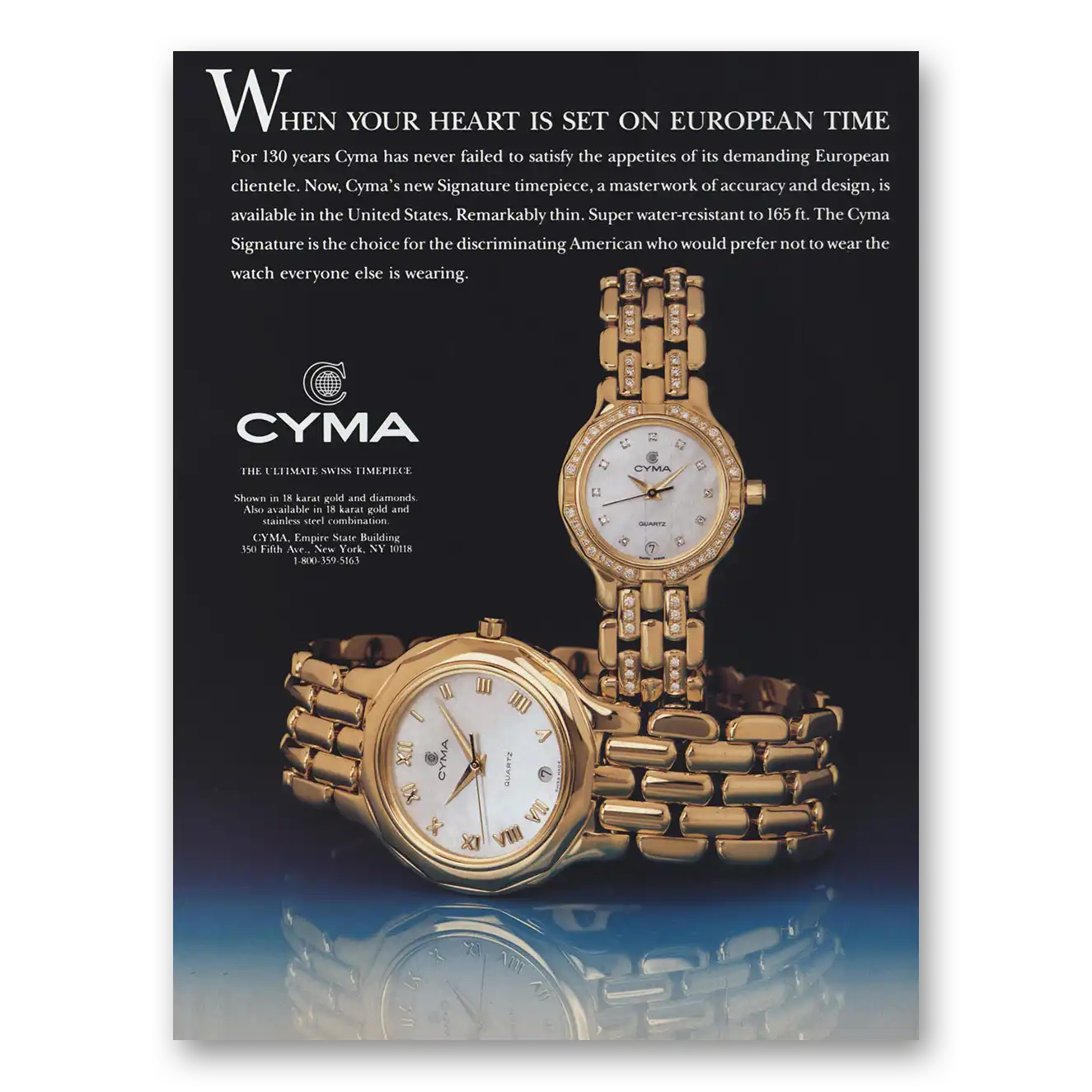 This is an original 1993 Cyma Watch print ad published by Cyma Watch.
