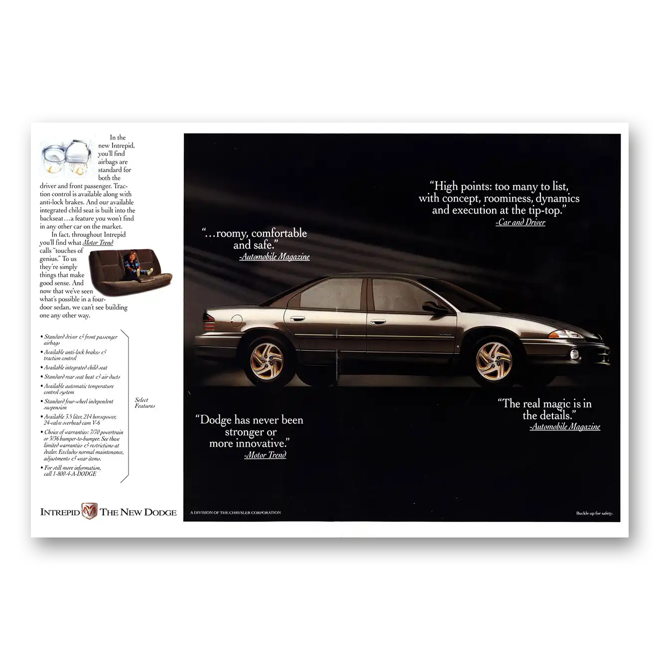 This is an original 1993 Dodge Intrepid print ad published by Dodge.