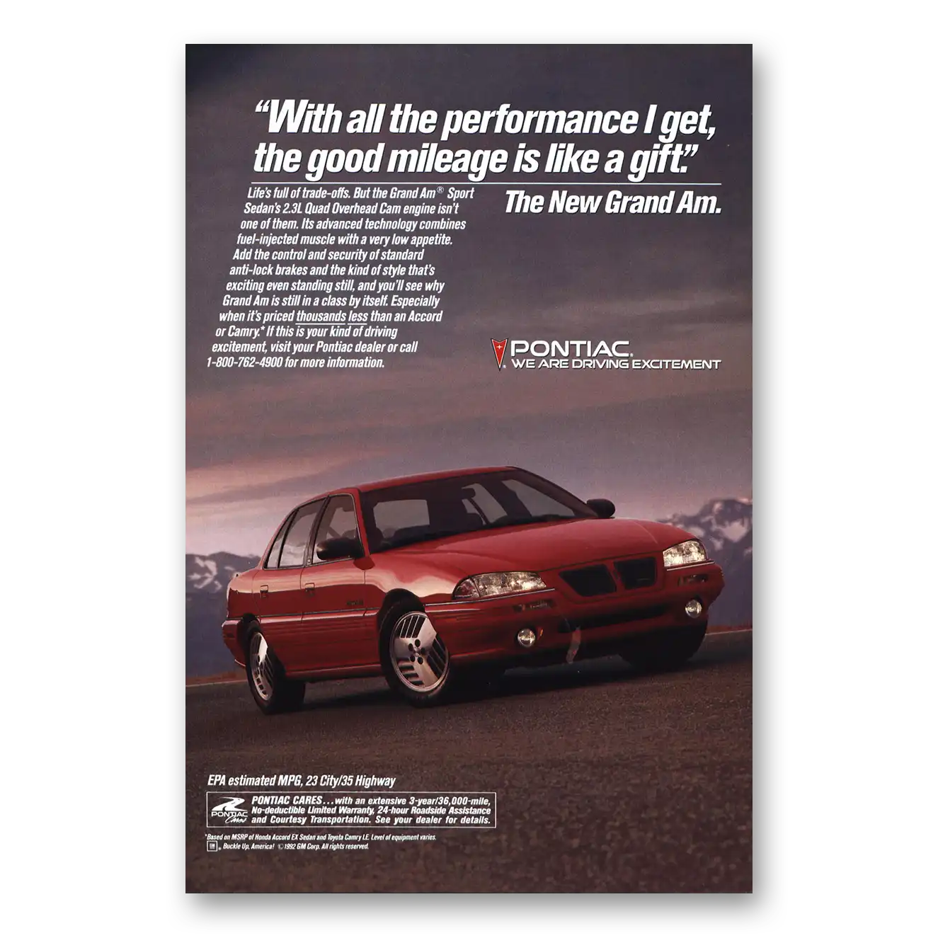 1993 Pontiac Grand Am Print Ad | Good Mileage