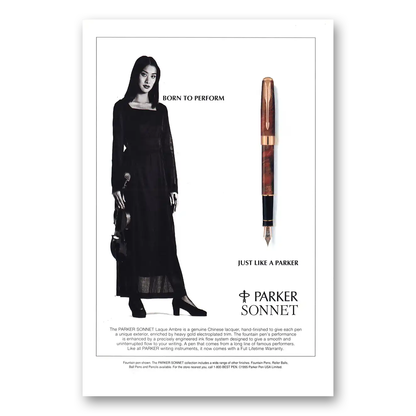 1995 Parker Sonnet Pen Print Ad | Born To Perform