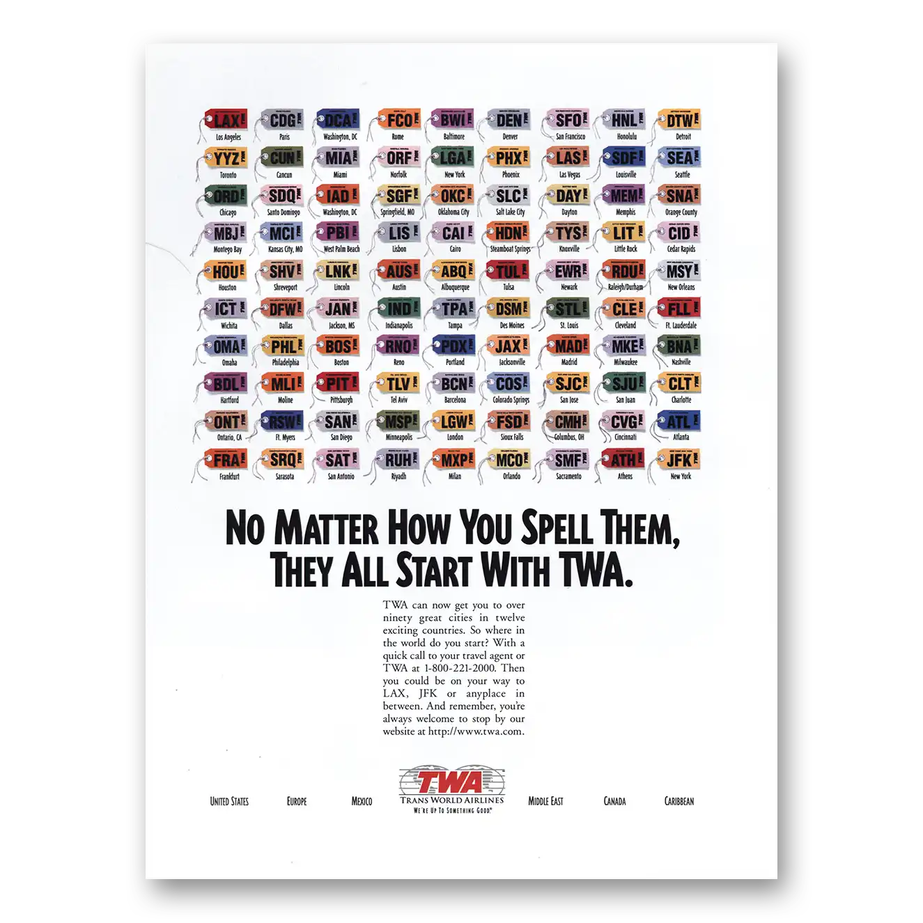 1996 TWA Airlines Print Ad | Spell Them