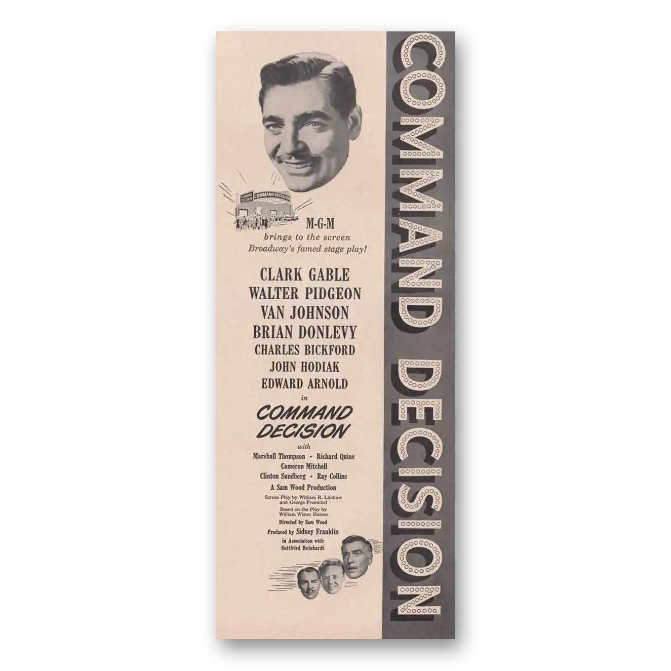 This is an original 1949 Command Decision Movie Promo print ad published by Metro Goldwyn Mayer.
