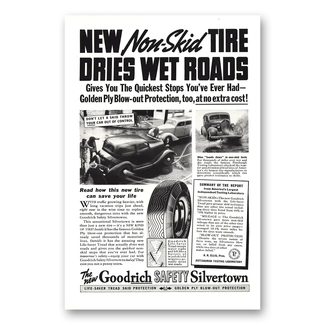 1938 Goodrich Silvertown Tires Print Ad | Non Skid