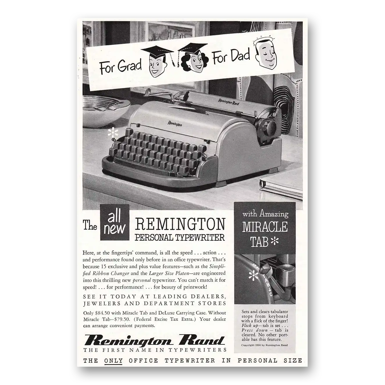 This is an original 1950 Remington Typewriter print ad published by Remington Typewriter.