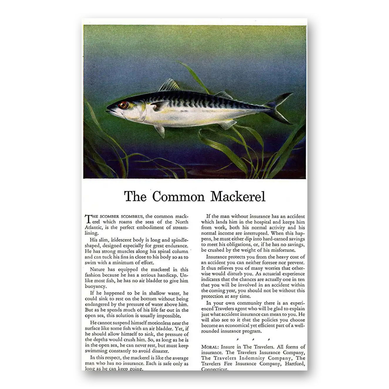 1943 Travelers Insurance Print Ad | Common Mackerel