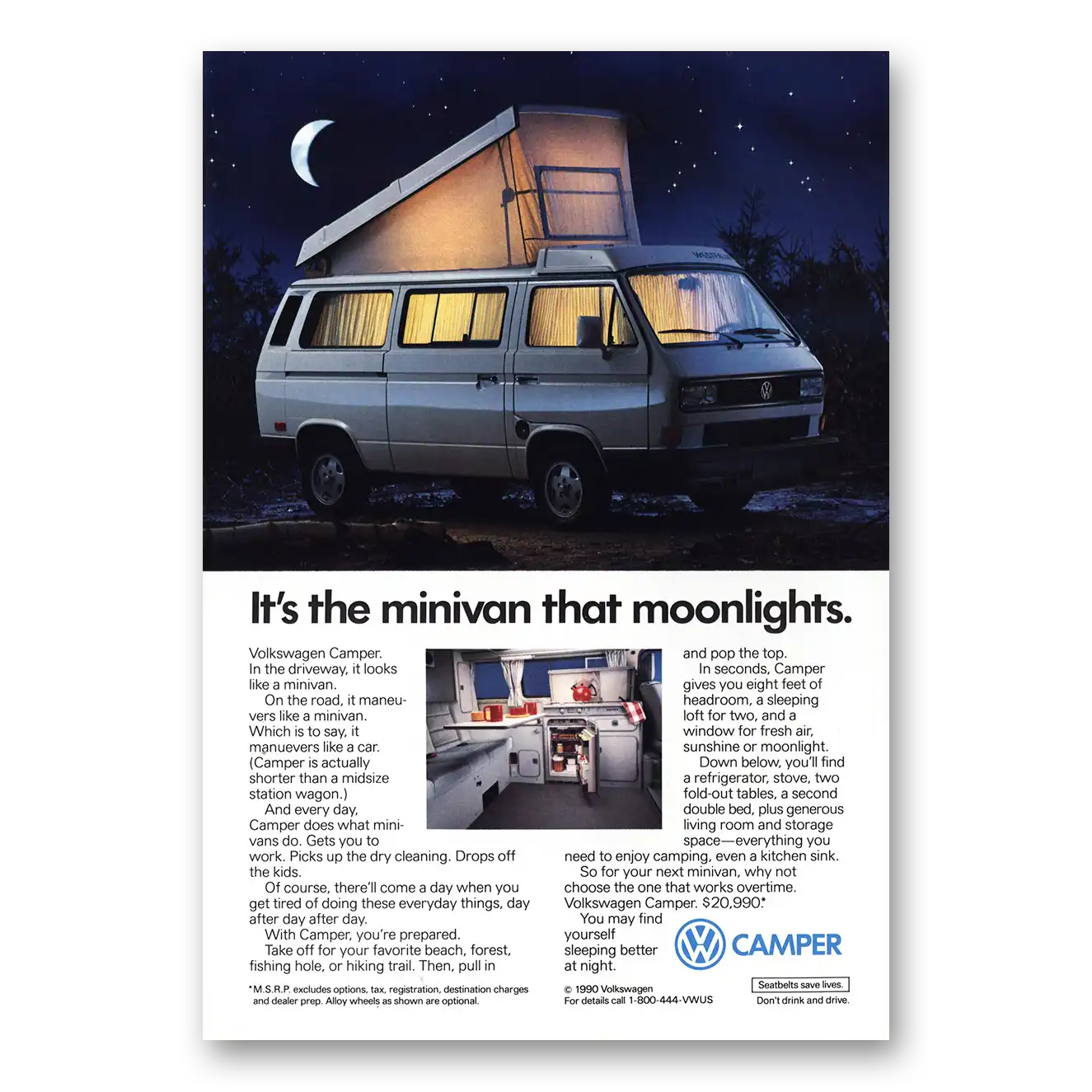 1990 Volkswagen Camper Print Ad | Minivan Moonlights
